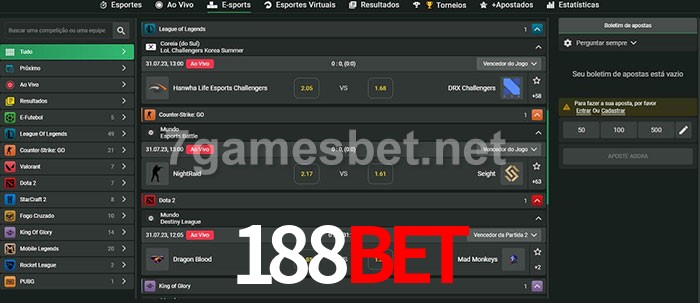 O 188bet oferece uma grande seleção de opções de apostas em e-sports com probabilidades competitivas
